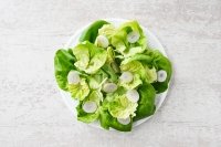 Coupez un demi-oignon pelé en fines tranches et disposez-les sur la laitue.